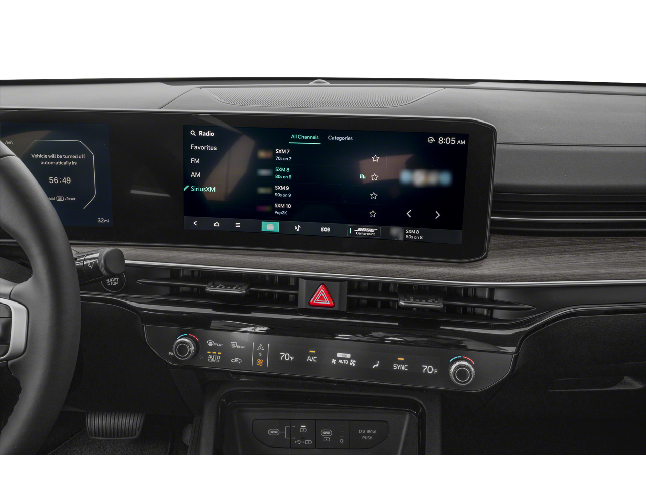 - Radio: AM/FM Audio System -inc: Bose Premium Audio w/12 speakers including center speaker, subwoofer, external amplifier, active sound design, 12.3" display screen, navigation, HD Radio, satellite digital radio, USB, telematics, Bluetooth®, voice recognition, wireless Android Auto and Apple CarPlay