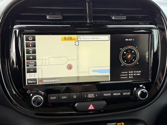 Equipped with 10-Way Power Adjustable Driver's Seat, 4-Wheel Disc Brakes, 6 Speakers, ABS brakes, Air Conditioning, Alloy wheels, AM/FM radio: SiriusXM, Apple CarPlay & Android Auto, Automatic temperature control, Brake assist, Bumpers: body-color, Cargo Mat w/Seatback Protection, Cargo Net, Carpeted Floor Mats, Delay-off headlights, Driver door bin, Driver vanity mirror, Dual front impact airbags, Dual front side impact airbags, Electronic Stability Control, Emergency communication system: UVO link, Exterior Parking Camera Rear, Front anti-roll bar, Front Bucket Seats, Front Center Armrest, Front dual zone A/C, Front fog lights, Front reading lights, Front wheel independent suspension, Fully automatic headlights, Heated door mirrors, Heated Front Bucket Seats, Heated front seats, Leather Shift Knob, Leather steering wheel, Low tire pressure warning, Navigation System, Occupant sensing airbag, Outside temperature display, Overhead airbag, Overhead console, Passenger door bin, Passenger vanity mirror, Power door mirrors, Power driver seat, Power steering, Power windows, Radio: AM/FM/MP3 UVO Link Audio System, Rear seat center armrest, Rear window defroster, Rear window wiper, Remote keyless entry, Speed control, Speed-sensing steering, Split folding rear seat, Steering wheel mounted audio controls, Tachometer, Telescoping steering wheel, Tilt steering wheel, Traction control, Tricot Premium Cloth Seat Trim, Trip computer, Variably intermittent wipers, and Wheels: 17 x 6.5 Alloy.