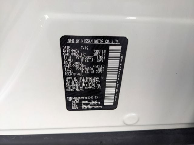Pearl White Tricoat 2020 Nissan Armada Platinum RWD 7-Speed Automatic 5.6L V8