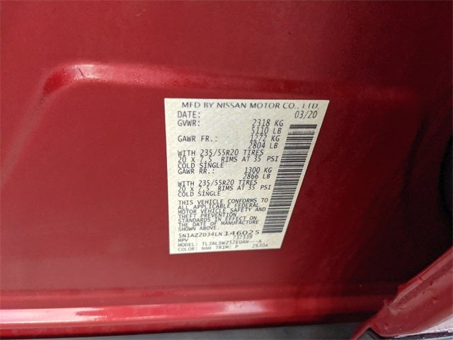 Cayenne Red Metallic 2020 Nissan Murano Platinum FWD CVT with Xtronic 3.5L V6 DOHC 24V