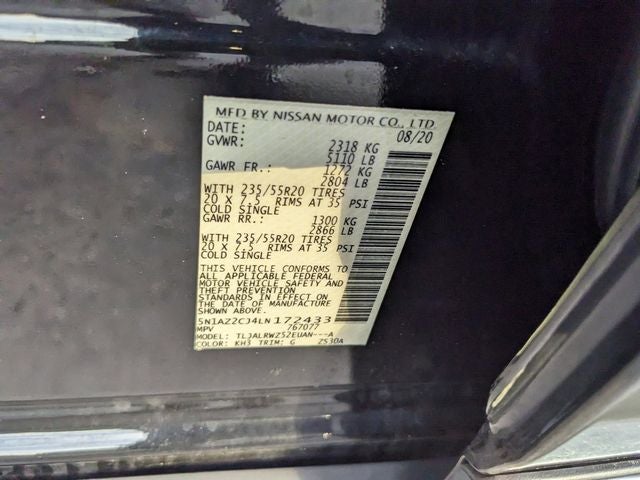 Super Black Metallic 2020 Nissan Murano SL FWD CVT with Xtronic 3.5L V6 DOHC 24V