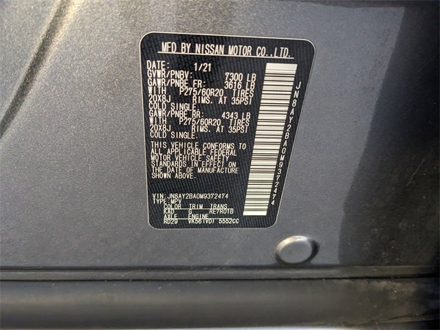Gun Metallic 2021 Nissan Armada SL RWD 7-Speed Automatic 5.6L V8 DOHC 32V LEV3-ULEV125 400hp