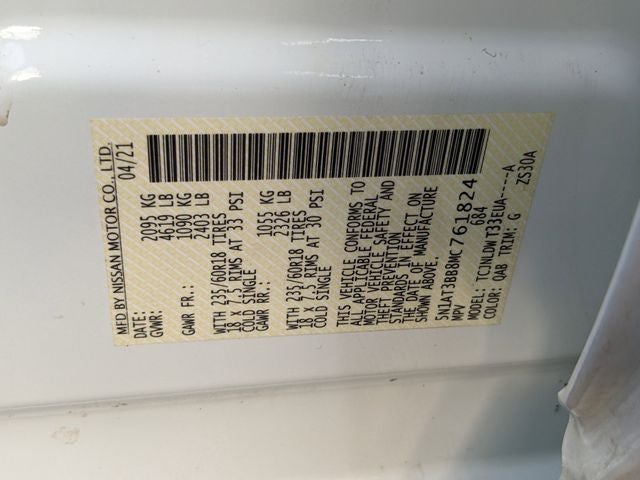 Pearl White Tricoat 2021 Nissan Rogue SV AWD CVT with Xtronic 2.5L I4 DOHC 16V