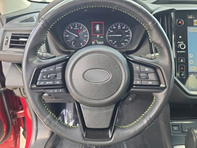 Equipped with Standard Model, 14 Speakers, 2nd Row Captain's Chairs Rear Seatback Protector, 3rd row seats: bench, 4-Wheel Disc Brakes, ABS brakes, Air Conditioning, All-Weather Floor Liners, Alloy wheels, AM/FM radio: SiriusXM, Auto High-beam Headlights, Auto-Dimming Exterior Mirror w/Approach Light, Auto-dimming Rear-View mirror, Automatic temperature control, Axle Ratio: 4.44, Brake assist, Bumpers: body-color, Cargo Tray, Compass, Delay-off headlights, Driver door bin, Driver vanity mirror, Dual front impact airbags, Dual front side impact airbags, Electronic Stability Control, Emergency communication system: STARLINK Safety and Security (Subscription Required), Four wheel independent suspension, Front anti-roll bar, Front Bucket Seats, Front Center Armrest, Front dual zone A/C, Front fog lights, Front reading lights, Fully automatic headlights, Garage door transmitter: HomeLink, harman/kardon® Speakers, Heated door mirrors, Heated Front Bucket Seats, Heated front seats, Heated rear seats, Heated steering wheel, HVAC memory, Illuminated entry, Knee airbag, Leather Shift Knob, Leather steering wheel, Low tire pressure warning, Memory seat, Navigation System, Occupant sensing airbag, Outside temperature display, Overhead airbag, Overhead console, Panic alarm, Passenger door bin, Passenger vanity mirror, Power door mirrors, Power driver seat, Power Liftgate, Power moonroof, Power passenger seat, Power steering, Power windows, Radio data system, Radio: Subaru STARLINK 11.6 Multimedia Nav System, Rear air conditioning, Rear anti-roll bar, Rear reading lights, Rear window defroster, Rear window wiper, Reclining 3rd row seat, Remote keyless entry, Security system, Speed control, Speed-sensing steering, Splash Guards, Split folding rear seat, Spoiler, STARLINK/Apple CarPlay/Android Auto, StarTex Upholstery, Steering wheel mounted audio controls, Tachometer, Telescoping steering wheel, Tilt steering wheel, Traction control, Trip computer, Turn signal indicator mirrors, Variably intermittent wipers, and Wheels: 20 x 7.5 J Aluminum Alloy w/Black Finish.