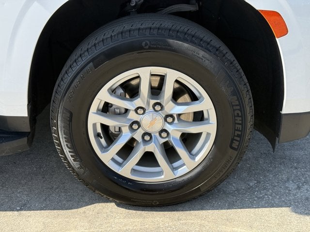 Equipped with Preferred Equipment Group 1LT (1st & 2nd Row Color-Keyed Carpeted Floor Mats, Auto-Dimming Inside Rear-View Mirror, Bose 9-Speaker Stereo Audio System Feature, Bright Front & Rear Door Sill Plates, Color-Keyed Carpeting Floor Covering, Driver & Front Outboard Passenger Airbags, Enhanced Driver Information Center, Floor Console w/Storage Area, Hands-Free Rear Power Programmable Liftgate, LED Daytime Running Lamps, Memory Settings for Driver, Remote Start, SiriusXM w/360L, Universal Home Remote, Wireless Charging, and Wrapped Steering Wheel), 10-Way Power Driver & Passenger Seat Adjusters, 2nd Row Manual Bucket Seats, 3.23 Rear Axle Ratio, 3rd row seats: split-bench, 4-Wheel Disc Brakes, 9 Speakers, ABS brakes, Air Conditioning, Alloy wheels, AM/FM radio: SiriusXM with 360L, Apple CarPlay/Android Auto, Auto High-beam Headlights, Auto-dimming Rear-View mirror, Automatic temperature control, Brake assist, Bumpers: body-color, Compass, Delay-off headlights, Deleted 3 Years of OnStar Remote Access, Driver door bin, Driver vanity mirror, Dual front impact airbags, Dual front side impact airbags, Electronic Stability Control, Emergency communication system: OnStar and Chevrolet connected services capable, Four wheel independent suspension, Front anti-roll bar, Front Bucket Seats, Front Center Armrest, Front dual zone A/C, Front High-Back Reclining Bucket Seats, Front reading lights, Fully automatic headlights, Garage door transmitter, Heated door mirrors, Heated Driver & Front Passenger Seats, Heated front seats, Illuminated entry, Infotainment Display, Leather-Appointed Seat Trim, Low tire pressure warning, Memory seat, Navigation System, Occupant sensing airbag, Outside temperature display, Overhead airbag, Overhead console, Panic alarm, Passenger door bin, Passenger vanity mirror, Power door mirrors, Power driver seat, Power Liftgate, Power passenger seat, Power steering, Power windows, Premium audio system: Chevrolet Infotainment 3 Premium, Premium Smooth Ride Suspension, Radio: Chevrolet Infotainment 3 Premium System, Rain sensing wipers, Rear air conditioning, Rear anti-roll bar, Rear reading lights, Rear seat center armrest, Rear window defroster, Rear window wiper, Remote keyless entry, Roof rack: xxxxxx, Security system, Speed control, Speed-sensing steering, Split folding rear seat, Spoiler, Steering wheel mounted audio controls, Tachometer, Telescoping steering wheel, Tilt steering wheel, Traction control, Trip computer, Variably intermittent wipers, Voltmeter, and Wheels: 18 x 8.5 Bright Silver Painted Aluminum.