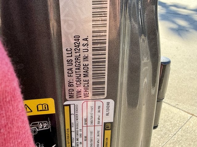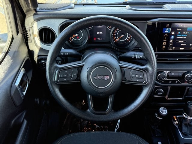 Equipped with Quick Order Package 24B Sport, 110 MPH Vehicle Max Speed Calibration, 12.3 Touchscreen Display, 3.73 Rear Axle Ratio, 4-Wheel Disc Brakes, 4G LTE Wi-Fi Hot Spot, 8 Speakers, ABS brakes, Air Conditioning, Alexa Built-In, AM/FM radio: SiriusXM with 360L, Apple CarPlay, Apple CarPlay/Android Auto, Brake assist, Cloth Low-Back Bucket Seats, Compass, Connectivity - US/Canada, Delay-off headlights, Disassociated Touchscreen Display, Driver door bin, Driver vanity mirror, Dual front impact airbags, Dual front side impact airbags, Electronic Stability Control, Emergency communication system: Jeep Connect, Front anti-roll bar, Front Bucket Seats, Front Center Armrest w/Storage, Front fog lights, Front reading lights, Google Android Auto, Integrated Center Stack Radio, Integrated roll-over protection, Low tire pressure warning, Manufacturer's Statement of Origin (DISC), MOPAR Spray In Bedliner, Normal Duty Suspension, Occupant sensing airbag, Outside temperature display, Overhead airbag, ParkView Rear Back-Up Camera, Passenger door bin, Passenger vanity mirror, Power steering, Radio data system, Radio: Uconnect 5 w/12.3 Display, Rear anti-roll bar, Rear reading lights, SiriusXM Radio Service, SiriusXM w/360L, Speed control, Split folding rear seat, Steering wheel mounted audio controls, Tachometer, Telescoping steering wheel, Tilt steering wheel, Traction control, Trip computer, USB Host Flip, Variably intermittent wipers, Voltmeter, and Wheels: 17 x 7.5 Black Steel Styled.