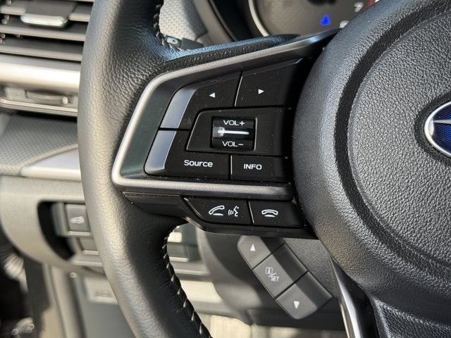 Equipped with Blind Spot Detection w/RCTA & Power Rear Gate (Blind-Spot Detection (BSD), Driver's Seatback Divided Pocket, Dual USB Charge Ports, EyeSight System, Multi-Function High Grade Display, and Power Rear Gate), 3.70 Axle Ratio, 4-Wheel Disc Brakes, 6 Speakers, ABS brakes, Air Conditioning, All-Weather Floor Liners, Alloy wheels, AM/FM radio: SiriusXM, Anti-whiplash front head restraints, Auto High-beam Headlights, Automatic temperature control, Brake assist, Bumpers: body-color, Cargo Tray, Driver door bin, Driver vanity mirror, Dual front impact airbags, Dual front side impact airbags, Electronic Stability Control, Emergency communication system: STARLINK Safety and Security (Subscription Required), Exterior Parking Camera Rear, Four wheel independent suspension, Front anti-roll bar, Front Bucket Seats, Front Center Armrest, Front fog lights, Front reading lights, Fully automatic headlights, Heated door mirrors, Heated Front Bucket Seats, Heated front seats, Illuminated entry, Knee airbag, Leather steering wheel, LED Upgrade, Low tire pressure warning, Occupant sensing airbag, Outside temperature display, Overhead airbag, Overhead console, Panic alarm, Passenger door bin, Passenger vanity mirror, Power door mirrors, Power driver seat, Power moonroof: Panoramic, Power steering, Power windows, Premium Cloth Upholstery, Radio data system, Radio: Subaru STARLINK 6.5 Multimedia Plus System, Rear anti-roll bar, Rear seat center armrest, Rear window defroster, Rear window wiper, Remote keyless entry, Roof rack: rails only, Security system, Speed control, Speed-sensing steering, Split folding rear seat, Spoiler, STARLINK/Apple CarPlay/Android Auto, Steering wheel mounted audio controls, Tachometer, Telescoping steering wheel, Tilt steering wheel, Traction control, Trip computer, Variably intermittent wipers, and Wheels: 17 x 7.0 J Black Machine Finish Alloy.