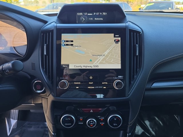 Equipped with 8 Audio w/harman/kardon & Power Rear Gate (harman/kardon 9-Speaker Audio System, Power Rear Gate, and Radio: Subaru STARLINK 8.0 Multimedia Nav System), 4-Wheel Disc Brakes, 4.11 Axle Ratio, 6 Speakers, ABS brakes, Air Conditioning, Alloy wheels, AM/FM radio: SiriusXM, Anti-whiplash front head restraints, Auto High-beam Headlights, Auto-Dimming Exterior Mirror w/Approach Light, Auto-Dimming Mirror w/Compass & HomeLink, Automatic temperature control, Brake assist, Bumpers: body-color, Driver door bin, Driver vanity mirror, Dual front impact airbags, Dual front side impact airbags, Electronic Stability Control, Emergency communication system: STARLINK Safety and Security (Subscription Required), Exterior Parking Camera Rear, Four wheel independent suspension, Front anti-roll bar, Front Bucket Seats, Front Center Armrest, Front dual zone A/C, Front fog lights, Front reading lights, Fully automatic headlights, Heated door mirrors, Heated Front Bucket Seats, Heated front seats, Illuminated entry, Knee airbag, Leather Shift Knob, Leather steering wheel, Low tire pressure warning, Navigation System, Occupant sensing airbag, Outside temperature display, Overhead airbag, Overhead console, Panic alarm, Passenger door bin, Passenger vanity mirror, Power door mirrors, Power driver seat, Power moonroof: Panoramic, Power steering, Power windows, Radio data system, Radio: Subaru STARLINK 8.0 Multimedia Plus System, Rear anti-roll bar, Rear seat center armrest, Rear Seatback Protector - Wilderness, Rear window defroster, Rear window wiper, Remote keyless entry, Roof rack: rails only, Security system, Speed control, Speed-sensing steering, Split folding rear seat, Spoiler, STARLINK/Apple CarPlay/Android Auto, Steering wheel mounted audio controls, Tachometer, Telescoping steering wheel, Textured StarTex Upholstery, Tilt steering wheel, Traction control, Trip computer, Turn signal indicator mirrors, Variably intermittent wipers, and Wheels: 17 x 7.0 J Matte Black Finish Alum-Alloy.