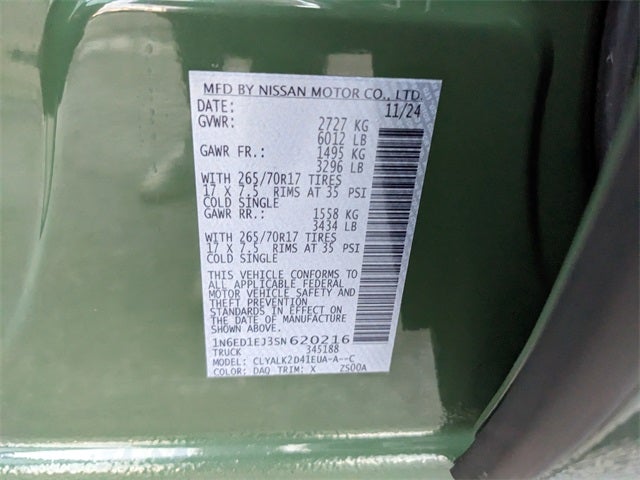 Tactical Green Metallic 2025 Nissan Frontier PRO-X RWD 9-Speed Automatic with Overdrive 3.8L DI DOHC 24V V6