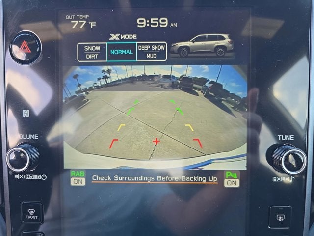 Equipped with harman/kardon Audio & Navigation & RAB (Radio: Subaru 11.6 Multimedia Navigation System and Reverse Automatic Braking (RAB) System), 4-Wheel Disc Brakes, 6 Speakers, ABS brakes, Air Conditioning, Alloy wheels, AM/FM radio: SiriusXM with 360L, Anti-whiplash front head restraints, Auto High-beam Headlights, Auto-Dimming Mirror w/Compass & HomeLink, Automatic temperature control, Brake assist, Bumpers: body-color, Cargo Tray, Door Projector Lights, Driver door bin, Driver vanity mirror, Dual front impact airbags, Dual front side impact airbags, Electronic Stability Control, Emergency communication system: MySubaru Safety (3-year free trial), Exterior Parking Camera Rear, Four wheel independent suspension, Front anti-roll bar, Front Bucket Seats, Front Center Armrest, Front dual zone A/C, Front fog lights, Front reading lights, Fully automatic headlights, Heated door mirrors, Heated Front Bucket Seats, Heated front seats, Heated steering wheel, Illuminated entry, Knee airbag, Leather steering wheel, LED Upgrade, Low tire pressure warning, Occupant sensing airbag, Outside temperature display, Overhead airbag, Overhead console, Panic alarm, Passenger door bin, Passenger vanity mirror, Perforated Leather-Trimmed Upholstery, Power door mirrors, Power driver seat, Power Liftgate, Power moonroof: Panoramic, Power passenger seat, Power steering, Power windows, Radio data system, Radio: Subaru 11.6 Multimedia Plus System, Rear anti-roll bar, Rear seat center armrest, Rear window defroster, Rear window wiper, Remote keyless entry, Security system, Speed control, Speed-sensing steering, Split folding rear seat, Spoiler, Steering wheel mounted audio controls, Tachometer, Telescoping steering wheel, Tilt steering wheel, Traction control, Trip computer, Turn signal indicator mirrors, Variably intermittent wipers, and Wheels: 18 x 7.0 J Dark Metallic Aluminum-Alloy.