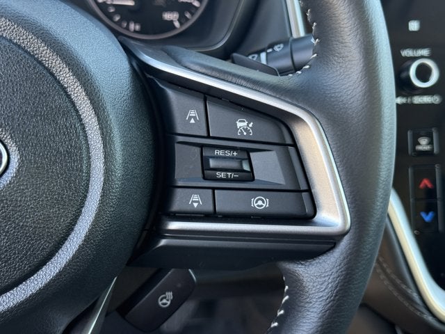 Equipped with Popular Package #2 (All-Weather Floor Liners, Cargo Tray, Exterior Auto-Dimming Mirror w/Approach Light, LED Upgrade, Rear Bumper Applique, and Splash Guards), Standard Model, 12 Speakers, 4-Wheel Disc Brakes, ABS brakes, Air Conditioning, Alloy wheels, AM/FM radio: SiriusXM with 360L, Anti-whiplash front head restraints, Apple CarPlay & Android Auto, Auto High-beam Headlights, Auto-dimming Rear-View mirror, Automatic temperature control, Brake assist, Bumpers: body-color, Compass, Driver door bin, Driver vanity mirror, Dual front impact airbags, Dual front side impact airbags, Electronic Stability Control, Emergency communication system: MySubaru Safety Plus (3-year free trial included), Exterior Parking Camera Rear, Four wheel independent suspension, Front anti-roll bar, Front Bucket Seats, Front Center Armrest w/Storage, Front dual zone A/C, Front fog lights, Front reading lights, Fully automatic headlights, Garage door transmitter: HomeLink, harman/kardon® Speakers, Heated door mirrors, Heated Front Bucket Seats, Heated front seats, Heated rear seats, Heated steering wheel, HVAC memory, Illuminated entry, Knee airbag, Leather steering wheel, Low tire pressure warning, Memory seat, Navigation system: TomTom Navigation w/what3words, Occupant sensing airbag, Outside temperature display, Overhead airbag, Overhead console, Panic alarm, Passenger door bin, Passenger vanity mirror, Perforated Leather-Trimmed Upholstery, Power door mirrors, Power driver seat, Power moonroof, Power passenger seat, Power steering, Power windows, Radio: Subaru 11.6 Multimedia System w/Navigation, Rear anti-roll bar, Rear seat center armrest, Rear window defroster, Remote keyless entry, Security system, Speed control, Speed-sensing steering, Split folding rear seat, Steering wheel mounted audio controls, Tachometer, Telescoping steering wheel, Tilt steering wheel, Traction control, Trip computer, Trunk Hook Bulk, Turn signal indicator mirrors, Variably intermittent wipers, and Wheels: 18 x 7.5J Gray Mach Finish Aluminum-Alloy.